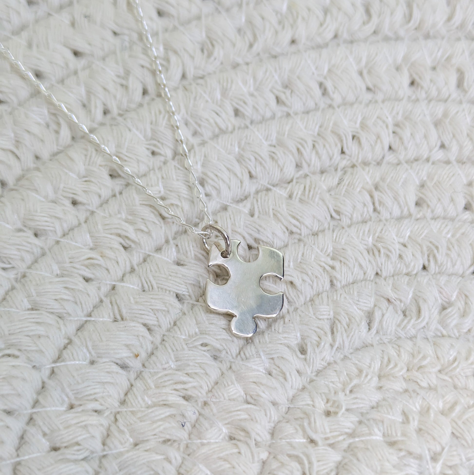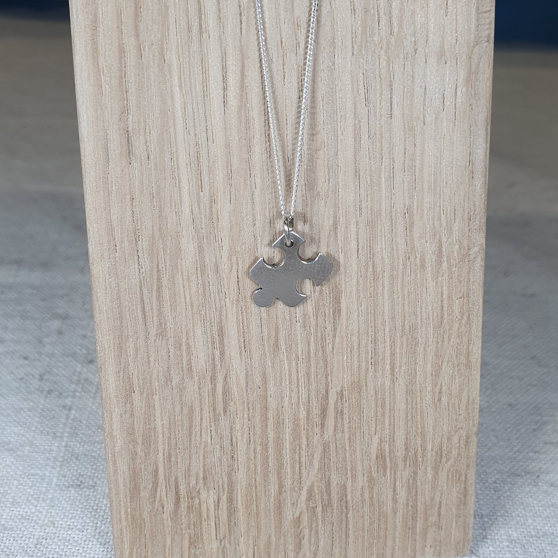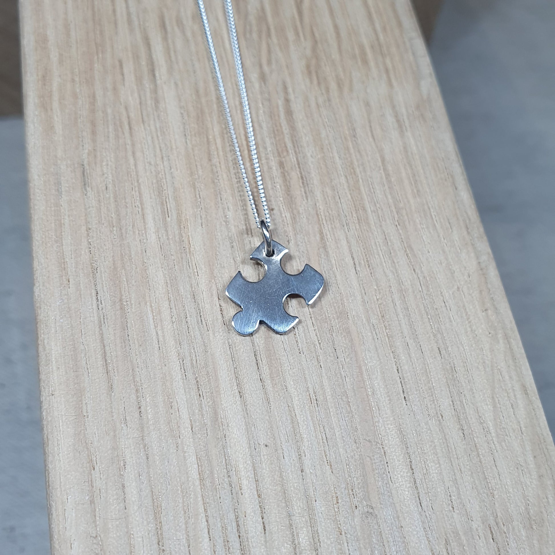 Made with 100% recycled sterling silver this necklace has a hand sawn jigsaw piece.