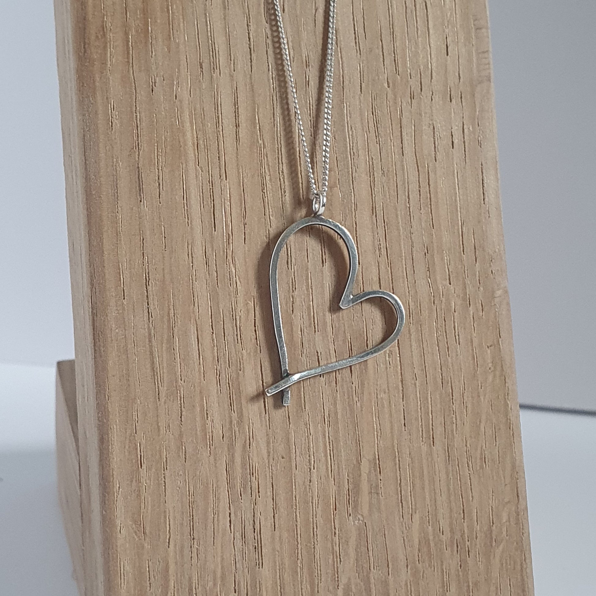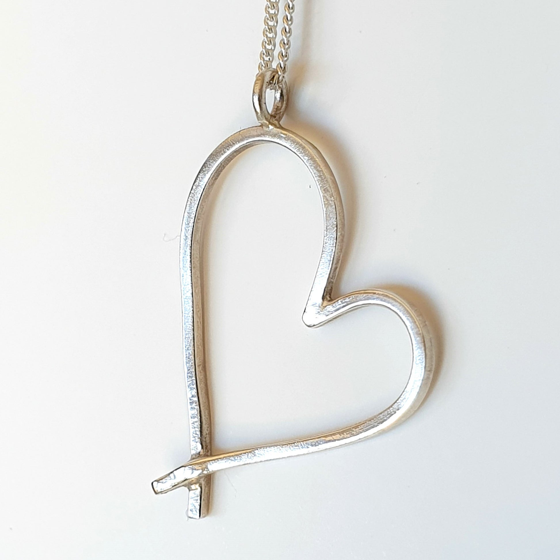 Part of the Wonky heart collection this is the beautiful crossover heart pendant. Using 100% recycled sterling silver square wire.
